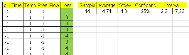 We have added 2 additional experiments, with the values called central points (all zeros) which will correspond (in uncoded values) to the average value of the high and low levels, in each factor.