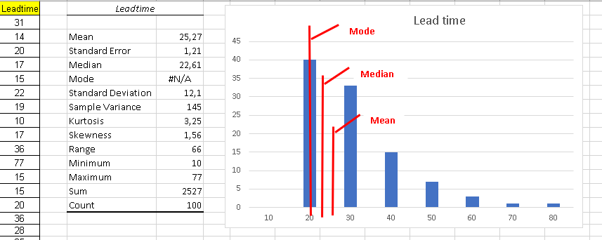 Let us check now manufacturing lead time normality replacing the data in column B with that of Leadtime.